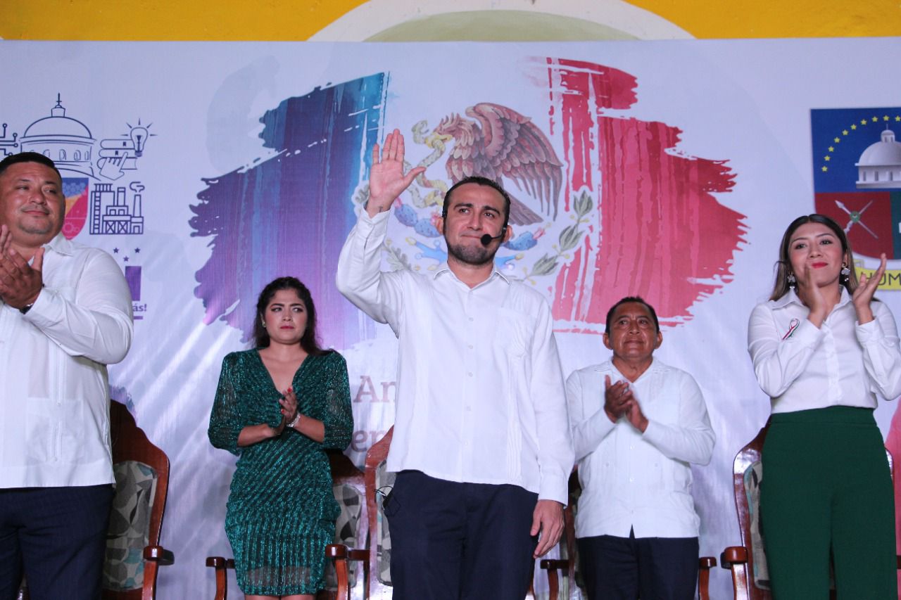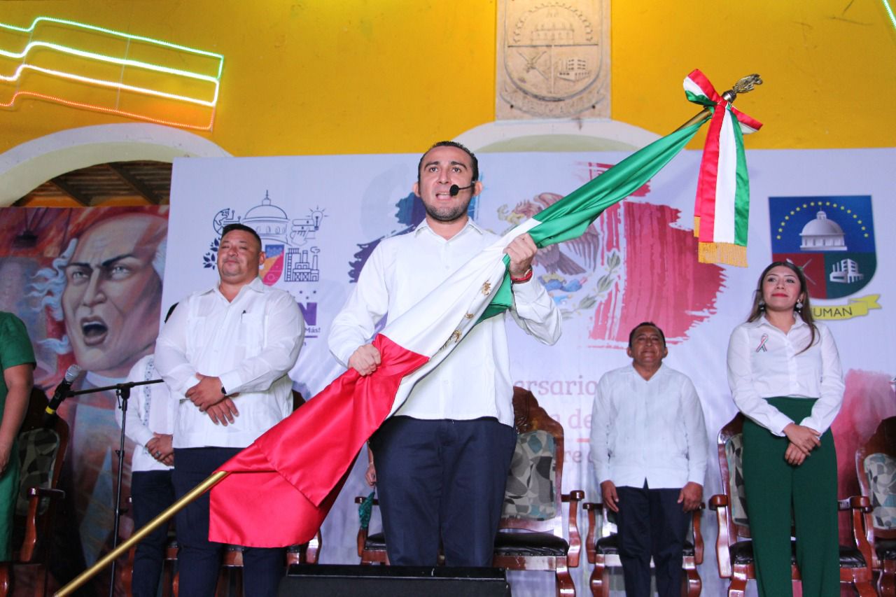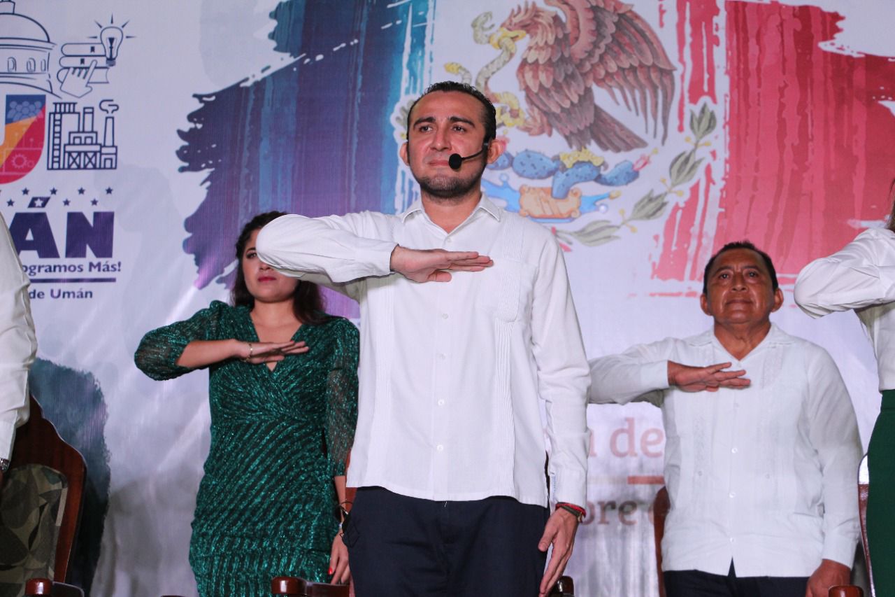 Celebrando el orgullo de ser mexicanos, el Presidente Municipal de Umán, Dr. Gaspar Ventura Cisneros Polanco encabezó el tradicional grito en conmemoración a los 212 Aniversario de la Independencia de México.