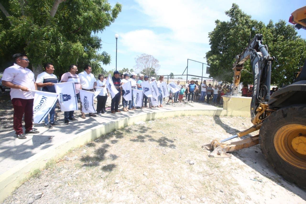 Edwin Bojórquez abandera inicia de trabajos de rehabilitación de parque infantil y unidad deportiva en San Camilo, Kanasín