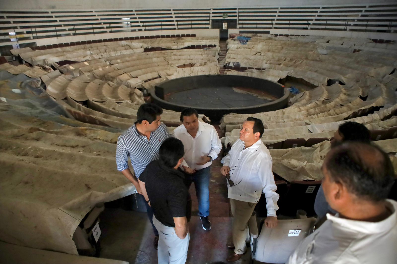 Acompañado de la Lic. Candy Eb Cauich y de Yussif Heredia Torre, directores de Eventos y de Operaciones respectivamente, se detalló que, previo acuerdo con el gobierno saliente, a la brevedad se comenzará con los trabajos de remodelación y mantenimiento para avanzar en las obras y que se concluyan a tiempo.