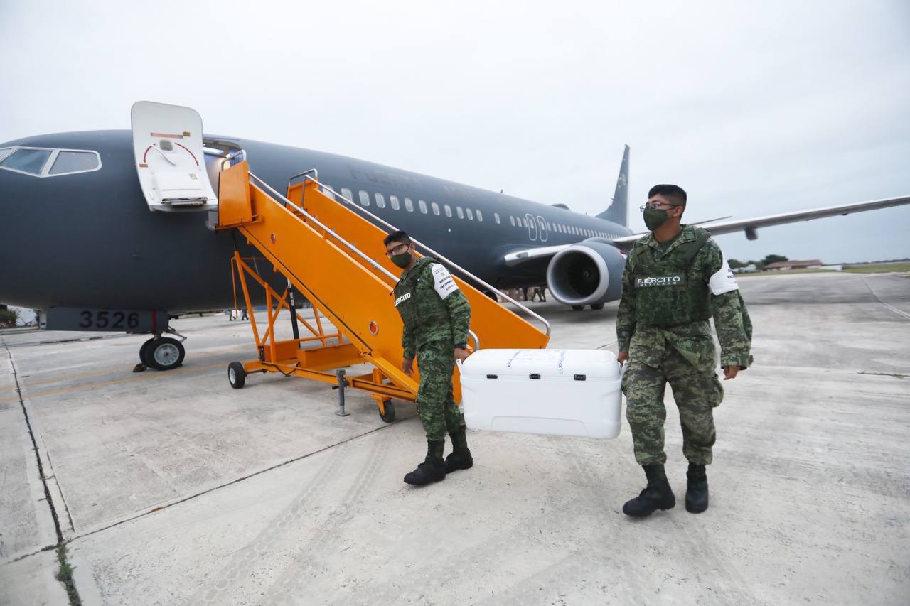 El Gobernador del Estado, Mauricio Vila Dosal, dio instrucciónes al director de Prevención y Protección de la Salud de la SSY, Isaac Hernández Fuentes, paraque acudiera a la Base Aérea Militar (BAM) número 8, para supervisar el arribo de este nuevo lote, a bordo de una aeronave Boeing 737-800 de la Fuerza Aérea Mexicana, matrícula 3526, proveniente de la Ciudad de México, que tocó territorio estatal a las 5:04 de esta tarde.