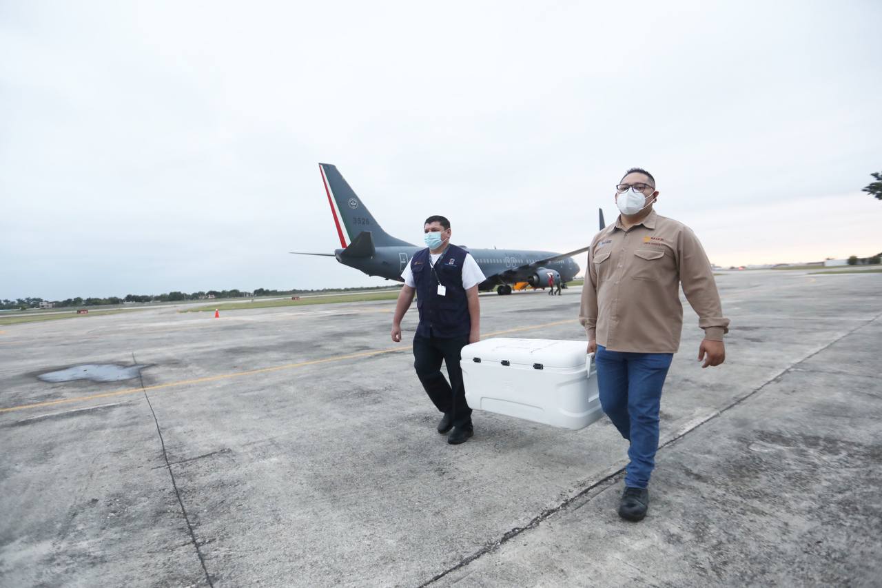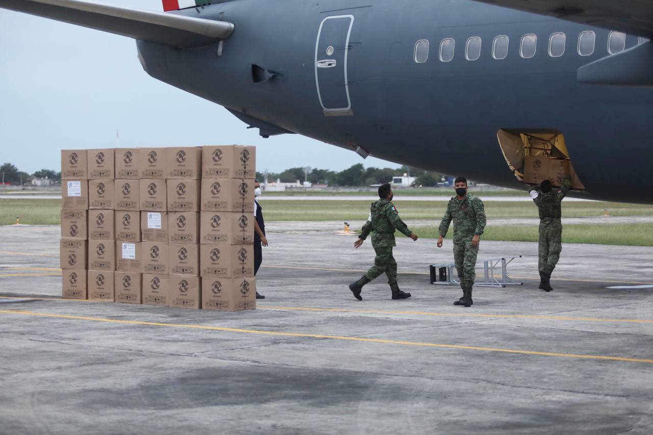 El Gobernador del Estado, Mauricio Vila Dosal, dio instrucciónes al director de Prevención y Protección de la Salud de la SSY, Isaac Hernández Fuentes, paraque acudiera a la Base Aérea Militar (BAM) número 8, para supervisar el arribo de este nuevo lote, a bordo de una aeronave Boeing 737-800 de la Fuerza Aérea Mexicana, matrícula 3526, proveniente de la Ciudad de México, que tocó territorio estatal a las 5:04 de esta tarde.