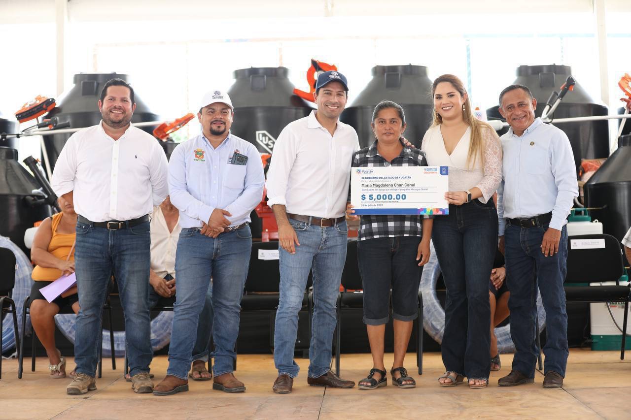 También distribuyó apoyos de Vivienda Social, Peso a Peso, MicroYuc Social, Mejoramiento Genético y culturales.