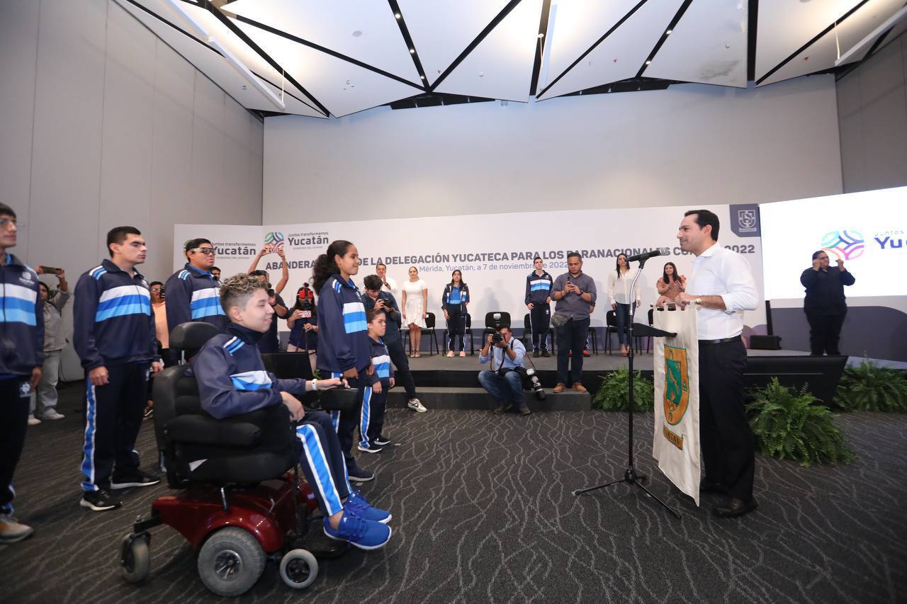El Gobernador Mauricio Vila Dosal encabezó el abanderamiento de la delegación, conformada por 95 deportistas y personal del cuerpo técnico, que representará a Yucatán en los Juegos Paranacionales de la Comisión Nacional de Cultura Física y Deporte (Conade) 2022, a realizarse en Hermosillo, Sonora, del 9 al 24 de noviembre.