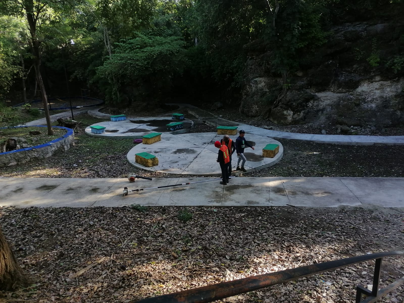 Entre las acciones que se prevén como parte de una atención integral están la reparación de registros eléctricos con cables expuestos, la instalación de iluminación adecuada y la rehabilitación del tobogán, que presentaba severos daños, además de la colocación de areneros para mayor seguridad infantil.