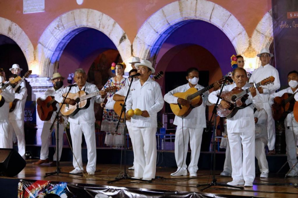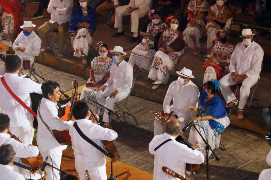 El Alcalde ataviado con el traje regional, presenció el programa que inició con la participación de los ganadores de las convocatorias “Calidad Interpretativa y Composición de Trova Yucateca 2021”.