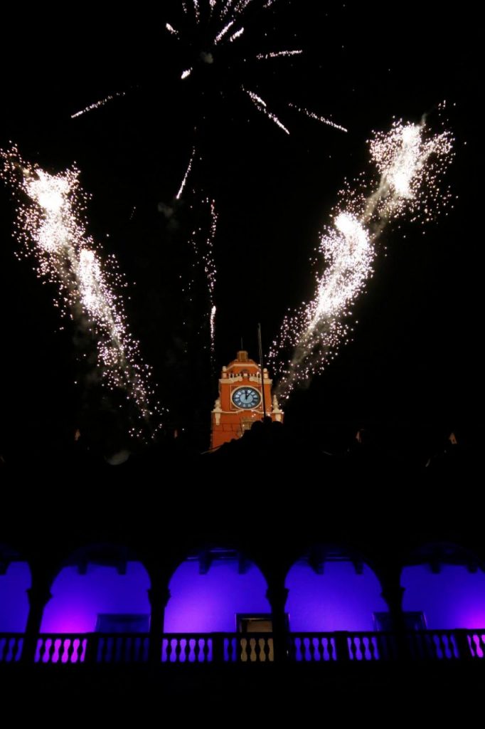 Posteriormente, y en una de las partes más emotivas del programa, los trovadores unieron sus voces para cantarle las mañanitas a la ciudad y como broche de oro se presentó un espectáculo de pirotecnia que iluminó el cielo y bañó de luces la fachada del Palacio Municipal. El evento se transmitió a través del Facebook “Mérida es cultura” y AyuntaMÉRIDA.