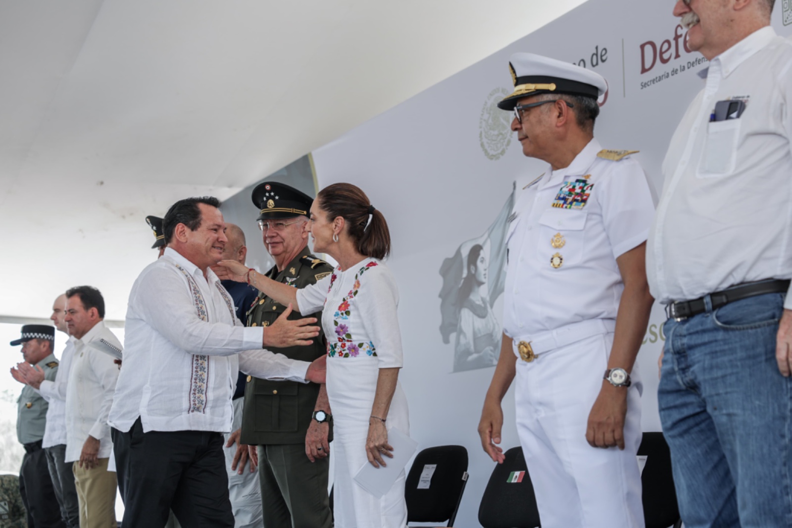 El Gobernador Joaquín Díaz Mena y la Presidenta de México, Claudia Sheinbaum Pardo, encabezaron este día el banderazo de inicio de la construcción de la Terminal Multimodal de Carga de Progreso del Tren Maya.