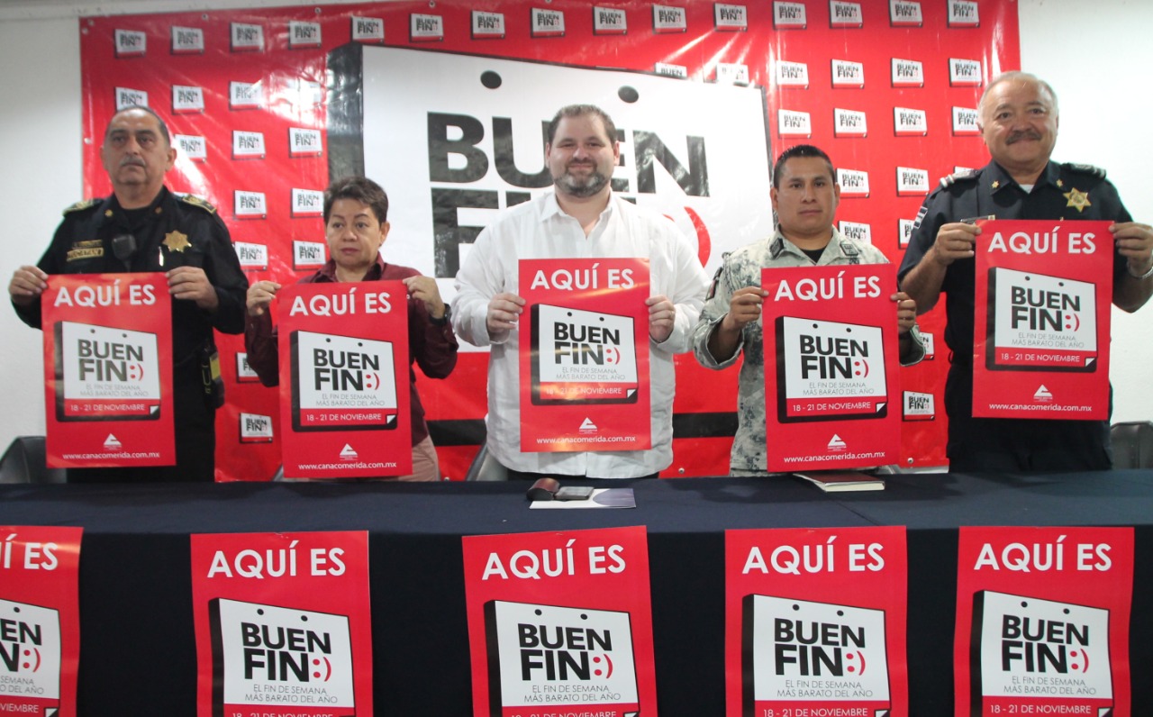 “A 9 días de iniciar la máxima fiesta comercial de México, El buen Fin, presentamos los operativos que se realizarán en Mérida y en el interior del estado para garantizar un clima de tranquilidad a los yucatecos que saldrán a disfrutar de este programa comercial que se llevará a cabo del 18 al 21 de noviembre”, anotó.