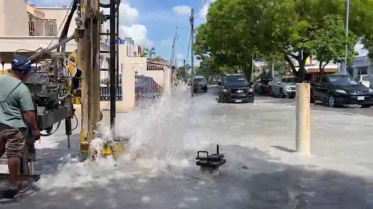 La Dirección de Obras Públicas del Ayuntamiento de Mérida informó que esta madrugada; durante los trabajos de perforación de un pozo en la avenida 7 de Pensiones -a la altura de la sede parroquial- la empresa encargada de los trabajos perforó por error, un tubo de alimentación de agua potable que surte a la zona.