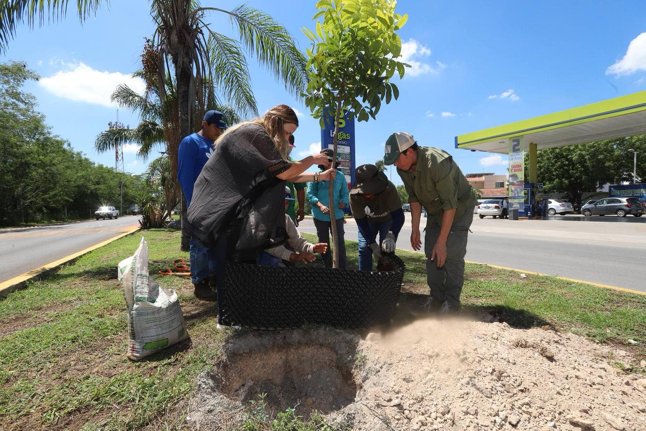 En esta innovación, que está a cargo de la Unidad de Medio Ambiente y Bienestar Animal que encabeza Raúl Escalante Aguilar, utilizan especies de la región que sean perennifolias, es decir, que tienen sus hojas el mayor tiempo del año, como el ramón, chacté, roble, pich, ciricote, huaya del país, naranja agria y mandarina, así como algunos ornamentales.