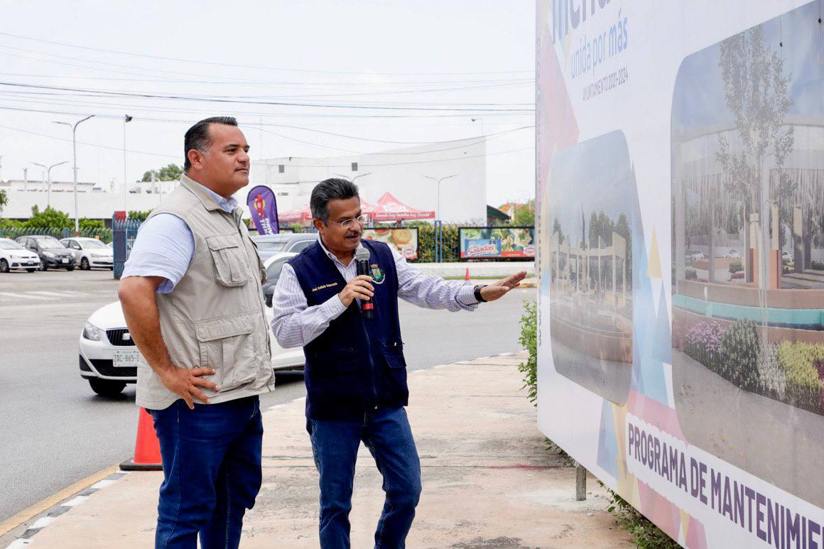 El alcalde de Mérida supervisa las acciones de mantenimiento integral en la glorieta Miguel Hidalgo, uno de los 33 puntos que se intervendrán