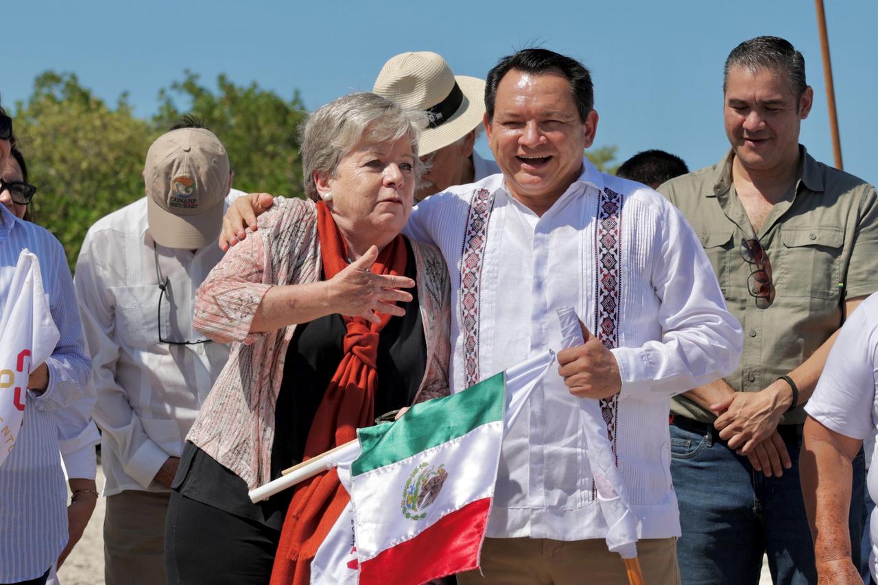 En el puerto de Chuburná, el Ejecutivo estatal y la funcionaria federal realizaron el banderazo de inicio de la siembra de más de 100 mil ejemplares de mangle rojo, negro y verde,