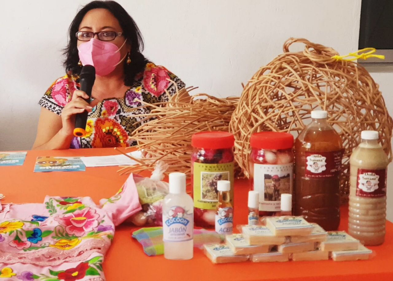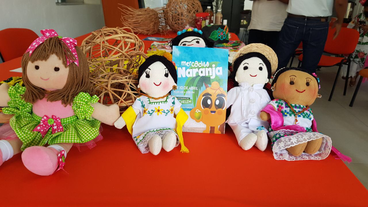 Entre los expositores se encuentra “Muñecas Peregrina” negocio familiar que confecciona muñecas de tela y ropa típica yucateca, proyecto originario del municipio de Ixil que da empleo a seis personas fijas en su taller.