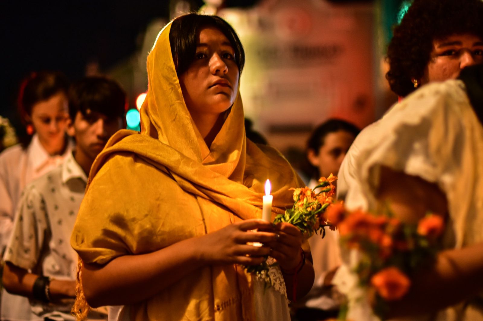 Así, a bordo de calesas, la “Catrina” y la “Mestiza” daban la señal de que los finados estaban cerca y se preparaban para explicar la importancia de nutrir el alma y el recuerdo a través de las ofrendas. En el camino, jóvenes del Centro de Educación Artística “Ermilo Abreu Gómez” (Cedart), ataviados con vestimenta regional y veladoras, daban la impresión de ser ánimas rumbo a la visita pactada del Janal Pixán, otros más eran almas atormentadas invitando al público a sumarse al trayecto.
