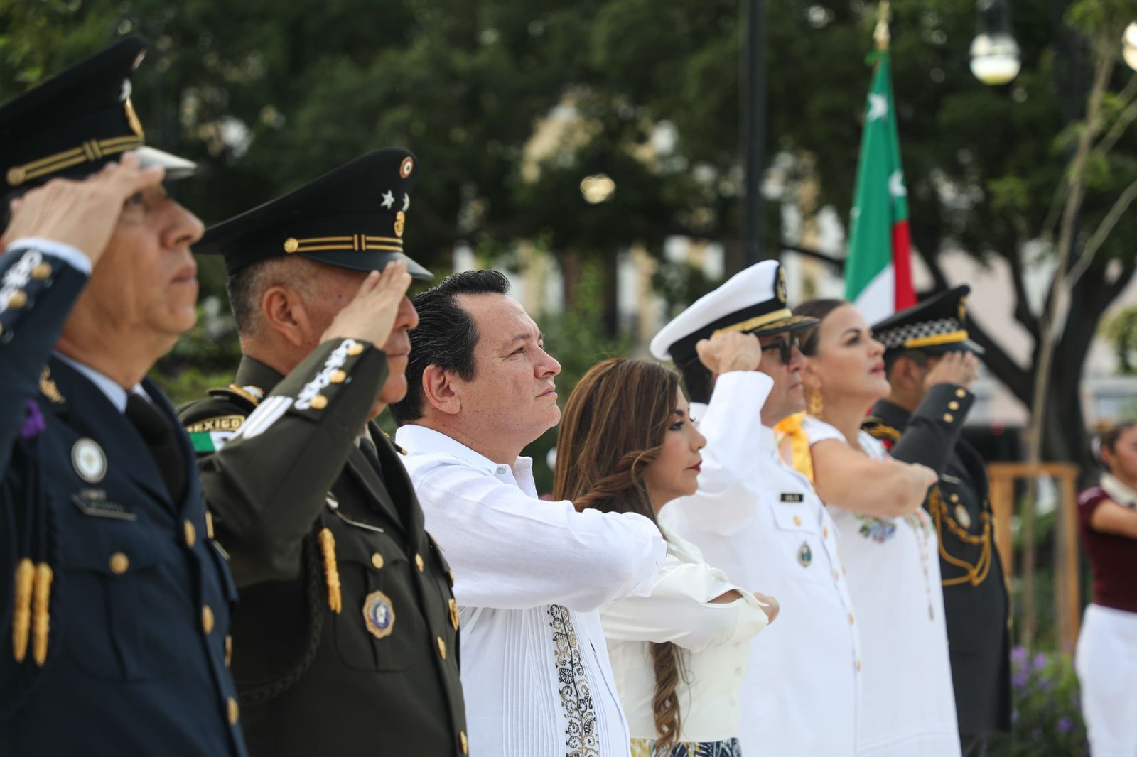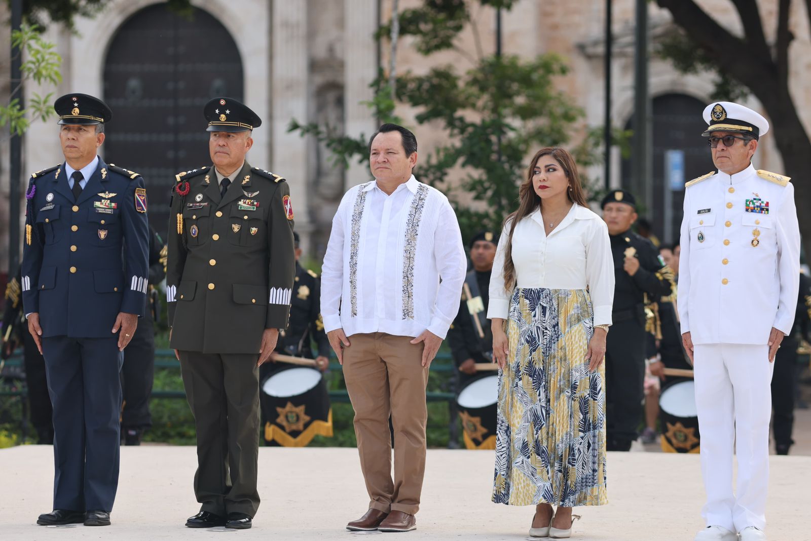 Acompañaron al Gobernador en el balcón central, la alcaldesa de Mérida Cecilia Patrón Laviada así como los comandantes de la 32 Zona Militar, General de Brigada Bernardo Reginaldo Reyes Herrera; de la XIII Zona Naval, Vicealmirante Héctor Rafael Solís Hernández; y de la Base Aérea Militar número 8, General de Grupo Piloto Aviador Magdaleno Castañón Muñoz; el titular de la SSP, Luis Felipe Saidén Ojeda; los diputados locales Neyda Pat Dzul y Wilmer Monforte Marfil.