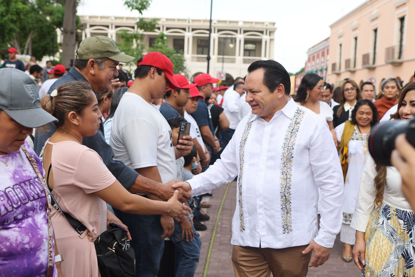 Junto con la presidenta del Sistema para el Desarrollo Integral de la Familia (Yucatán), la maestra Wendy Méndez Naal, y sus hijos Julián y Joaquín, el Gobernador presenció la participación de un total de 4,652 elementos divididos en 64 contingentes, que a su paso dieron muestra de marcialidad en el recorrido, que partió de Paseo de Montejo y culminó en el barrio de San Juan, pasando por las principales calles del Centro Histórico de la ciudad de Mérida.