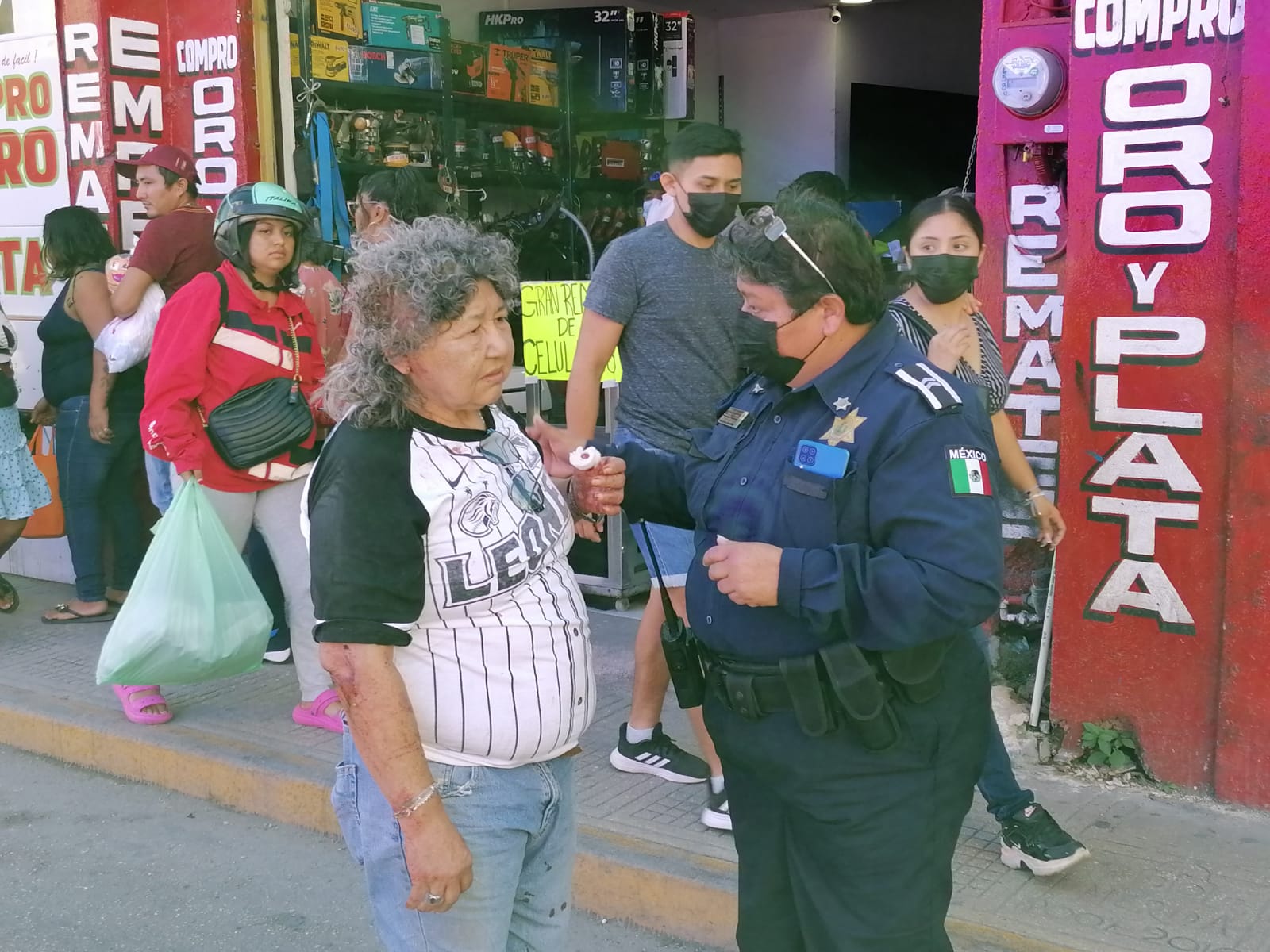 Testigos dieron aviso al la policía municipal quienes cerraron parte de la calle para que la los parámedicos de la misma corporación hicieran su trabajo de atender y limpiar sus heridas de la doñita.