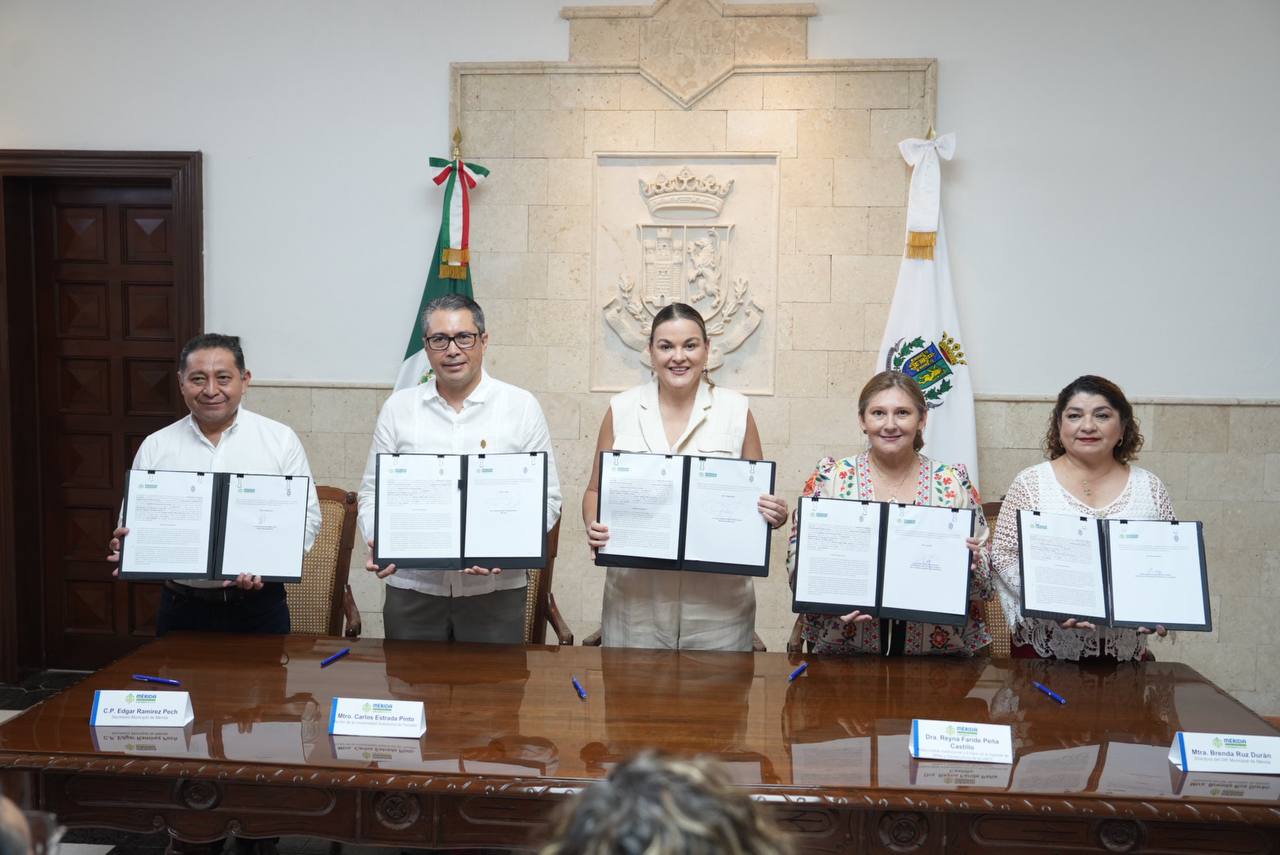 Atestiguaron la firma Edgar Martín Ramírez Pech, secretario municipal; la síndica María Cristina Castillo Espinosa; Flora Zapata Mendiolea, coordinadora general de Justicia Social y Desarrollo Humano; Hugo Andrés Pérez Polanco, secretario ejecutivo del Sistema de Protección Integral de Niñas, Niños y Adolescentes del Municipio de Mérida, y la diputada local Zacil Méndez Hernández.