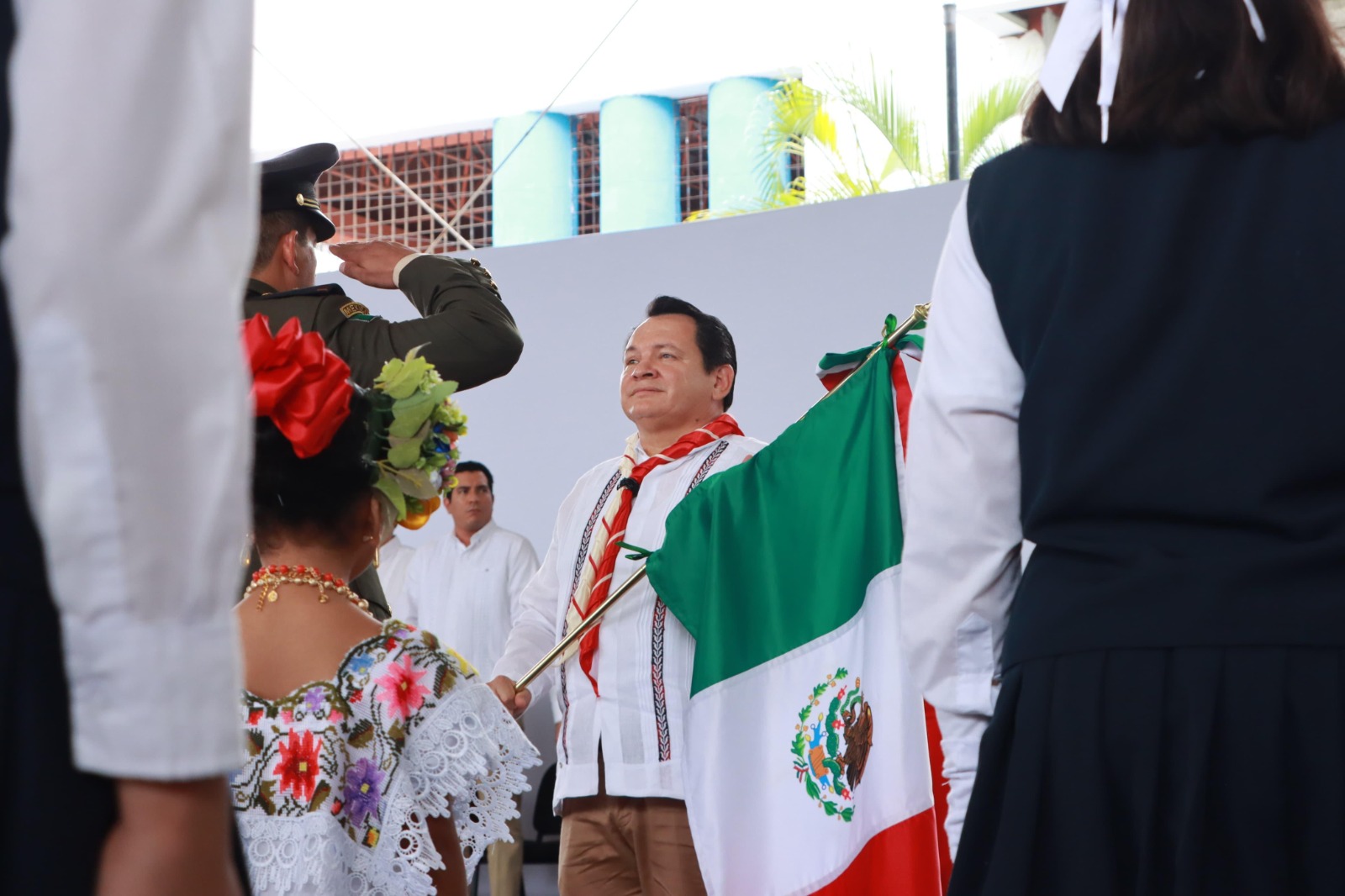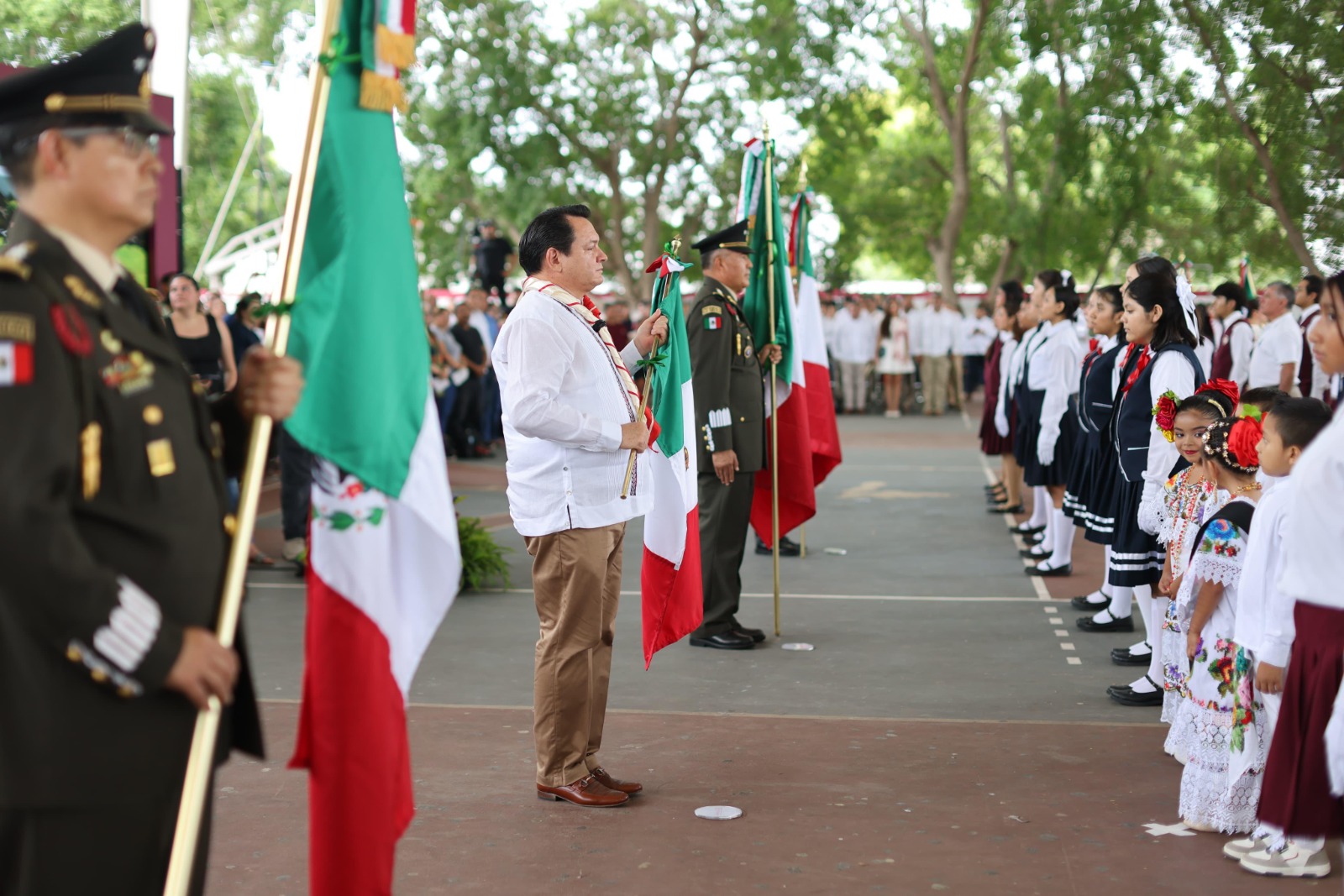 Ante el comandante de la X Región Militar, el General de Brigada Cristóbal Lozano Mosqueda, el titular del Ejecutivo estatal señaló que, con esta conmemoración, los yucatecos renovamos el juramento de lealtad a la patria y reafirmamos nuestro compromiso con los valores de justicia, libertad y democracia.