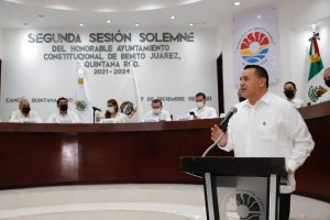 En sesión solemne del Cabildo de Benito Juárez realizada esta tarde, el Alcalde Renán Barrera Concha dirigió un mensaje a los ediles en donde aseguró que el hermanamiento con el municipio de Benito Juárez se traduce en una oportunidad para generar una serie de condiciones propias de nuestras ciudades, que tengan repercusión en los empleos, la inversión, la seguridad pública, la salud, el turismo, entre otros aspectos sociales.