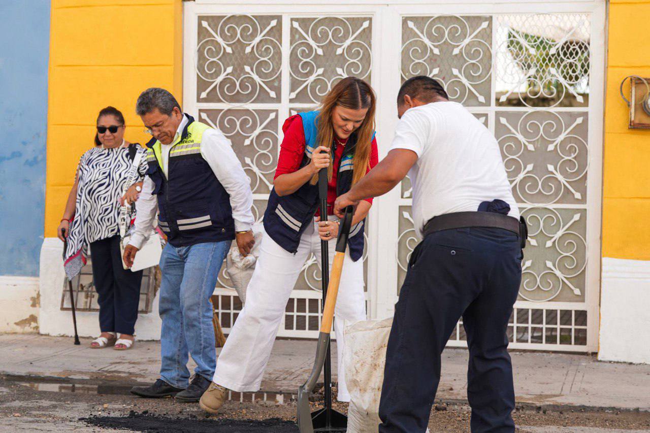 Ante las intensas lluvias de la temporada que han bañado la capital yucateca, la presidenta municipal de Mérida, Cecilia Patrón Laviada, arrancó una fase especial del operativo Calle por Calle con el fin de brindar una mejor atención al bacheo, con el apoyo de brigadas conformadas por personal de diferentes dependencias del Ayuntamiento,y para motivar a los brigadistas, la propia alcaldesa participó en algunos puntos de bacheo.