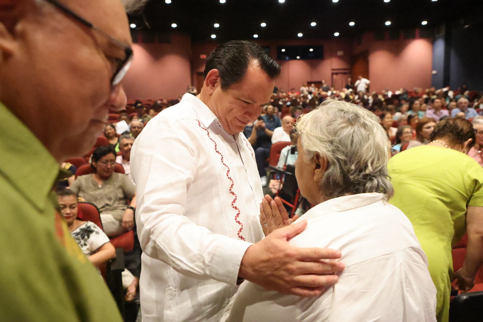 Díaz Mena felicitó a todo el equipo de INAPAM, por la organización del festejo realizado en el Teatro Daniel Ayala de la Ciudad de Mérida, que contó con mariachi, jarana, trova y la participación de Maricarmen Pérez; afirmó “queremos que el adulto mayor encuentre espacios en la ciudad de Mérida, y en los municipios, en donde puedan acudir a la convivencia con personas de su generación,