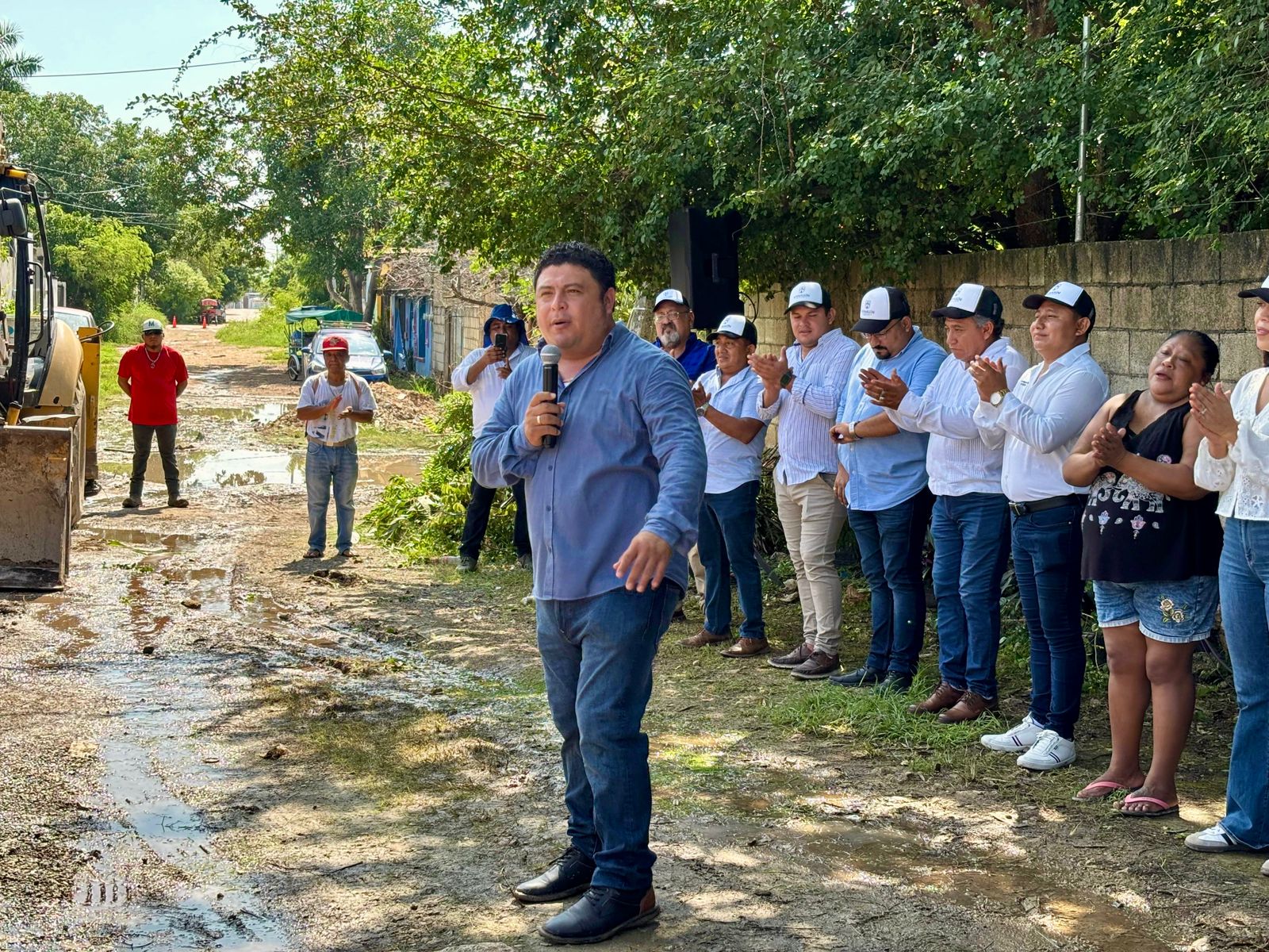 Edwin Bojórquez abandera inicio de construcción de nuevas calles en la Francisco Villa Oriente en Kanasín y otra colonia, serán más de 3,900 mt2 de nuevas vías.