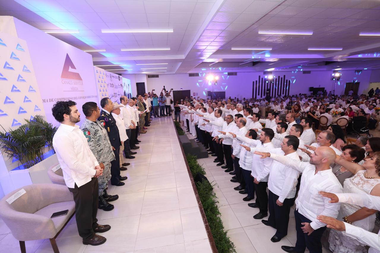 El Consejo Directivo 2025 de la Cámara Nacional de Servicios y Turismo de Mérida rindió protesta en una ceremonia encabezada por su presidente, José Enrique Molina Casares, quien estuvo acompañado por el presidente saliente, Levy Abraham Macari; el gobernador del Estado, Joaquín Díaz Mena; y el presidente de la Confederación de Cámaras Nacionales de Comercio, Servicios y Turismo, Octavio de la Torre de Stéffano.