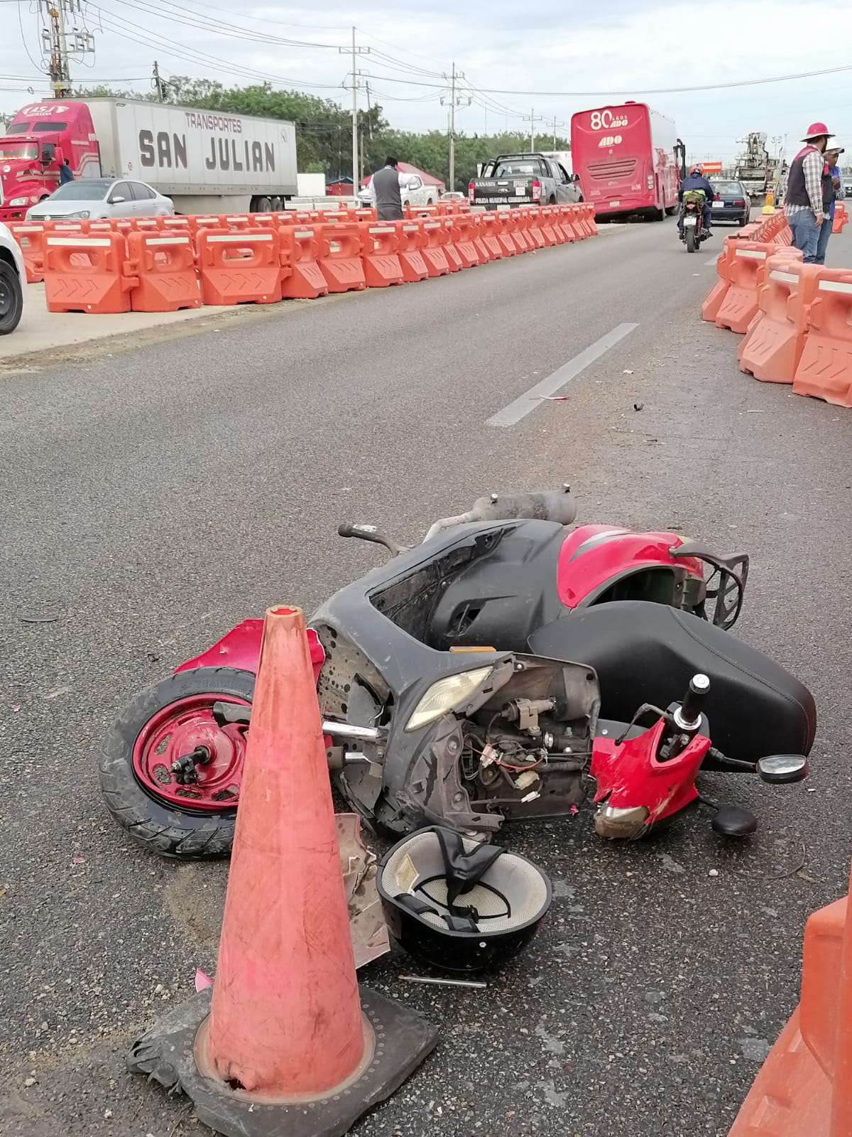 En la carretera Federal Mérida-Cancún ocurrió un incidente vial en la que se ven involucrados un autobús de la empresa ADO y una motocicleta.