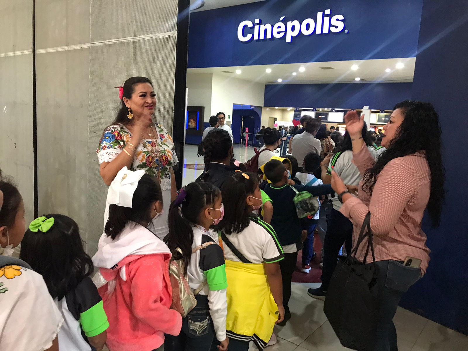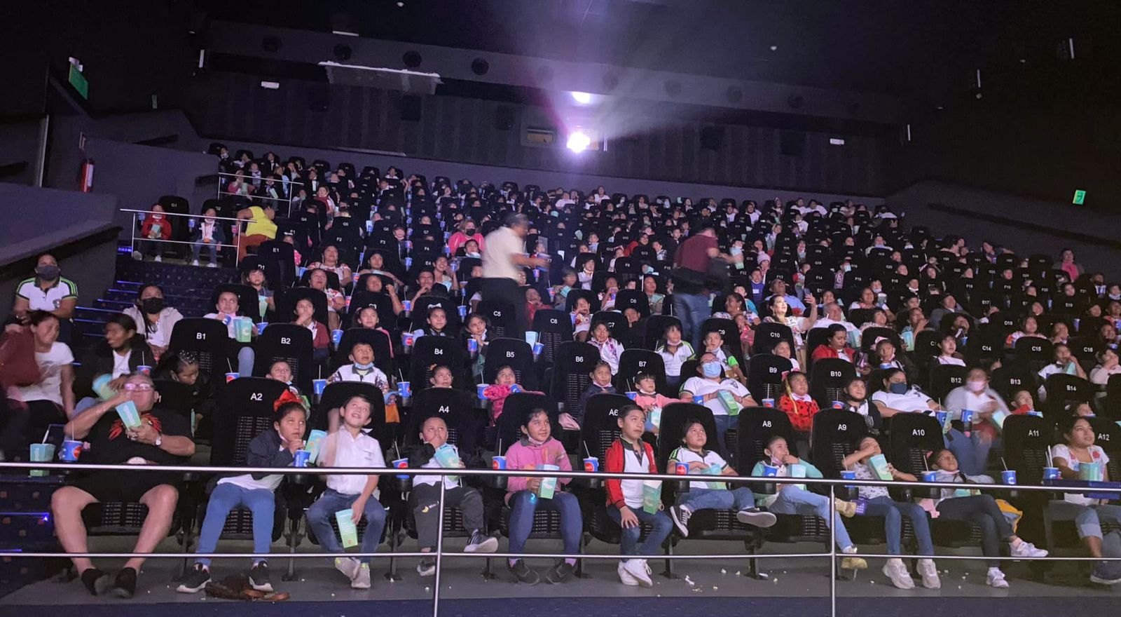 La función inició a las 10 horas y desde muy temprano los alumnos, acompañados de sus profesores y familiares, arribaron a las cómodas instalaciones de la empresa, la función incluyó un combo de palomitas y refresco gratis para cada uno de los asistentes.