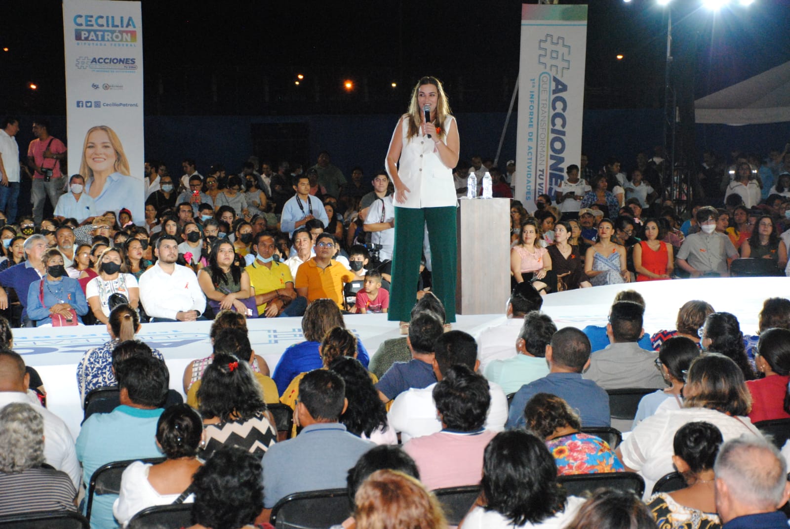 En un acto de rendición de cuentas a los meridanos, la diputada federal Cecilia Patrón dio su informe de actividades legislativas en un acto multitudinario, la tarde de este viernes, en la unidad deportiva de Pacabtún.
