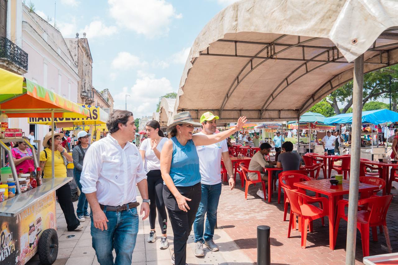 En la Plaza Grande, Cecilia Patrón visitó a los 181 oferentes y artesanos del programa “Mérida en Domingo” que este fin de semana regresaron en su totalidad con una mejor organización.