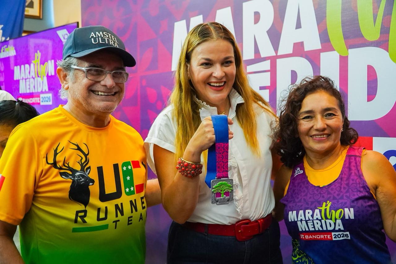 La presidenta municipal de Mérida, Cecilia Patrón Laviada, encabezó la presentación oficial de la playera, medalla y ruta del Marat’hon Mérida Banorte 2026, evento que se ha consolidado como una de las competencias deportivas más importantes del sureste.