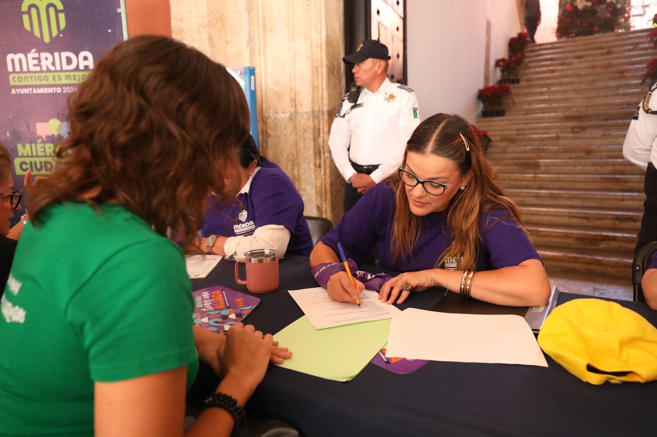 Un Miércoles Ciudadano violeta encabezó la presidenta municipal Cecilia Patrón Laviada, en compañía de funcionarias de las diferentes dependencias del Ayuntamiento de Mérida, una atención de primera mano para dar solución a las necesidades de la población y escuchar de manera directa a otras mujeres que requieren apoyo, orientación o acompañamiento institucional.