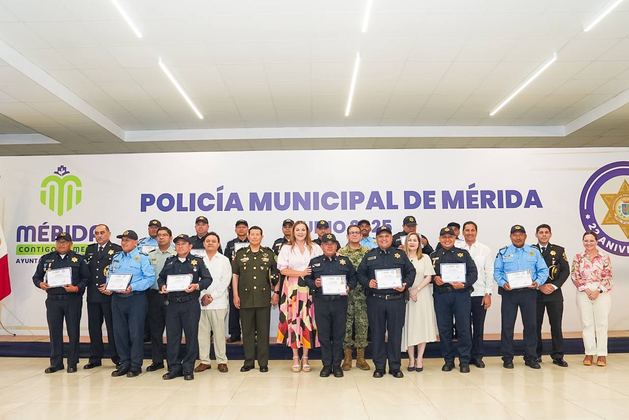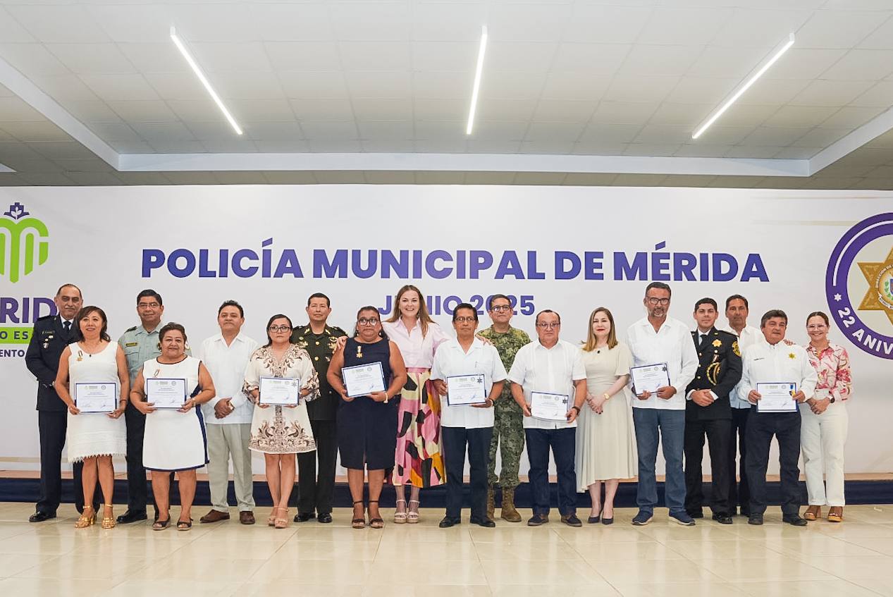 Con el reconocimiento y gratitud a las mujeres y hombres que desde la Policía Municipal brindan protección y seguridad a las y los meridanos, la Presidenta Municipal Cecilia Patrón Laviada celebró el 22o. aniversario de la corporación.