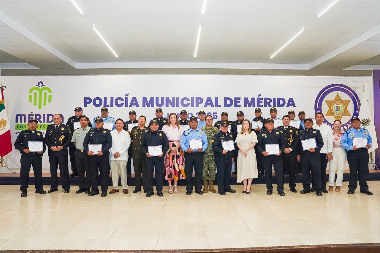 Acompañada del comisario Rafael Chairez Cuevas, director de la Policía Municipal, la alcaldesa recordó que gracias a esa labor fundamental Mérida se mantiene como una de las ciudades más seguras del país, ocupando el primer lugar nacional en menor incidencia delictiva, con 79.6 delitos por cada 100 mil habitantes, cifra inferior a la tasa nacional, de acuerdo con el Secretariado Ejecutivo del Sistema Nacional de Seguridad Pública.