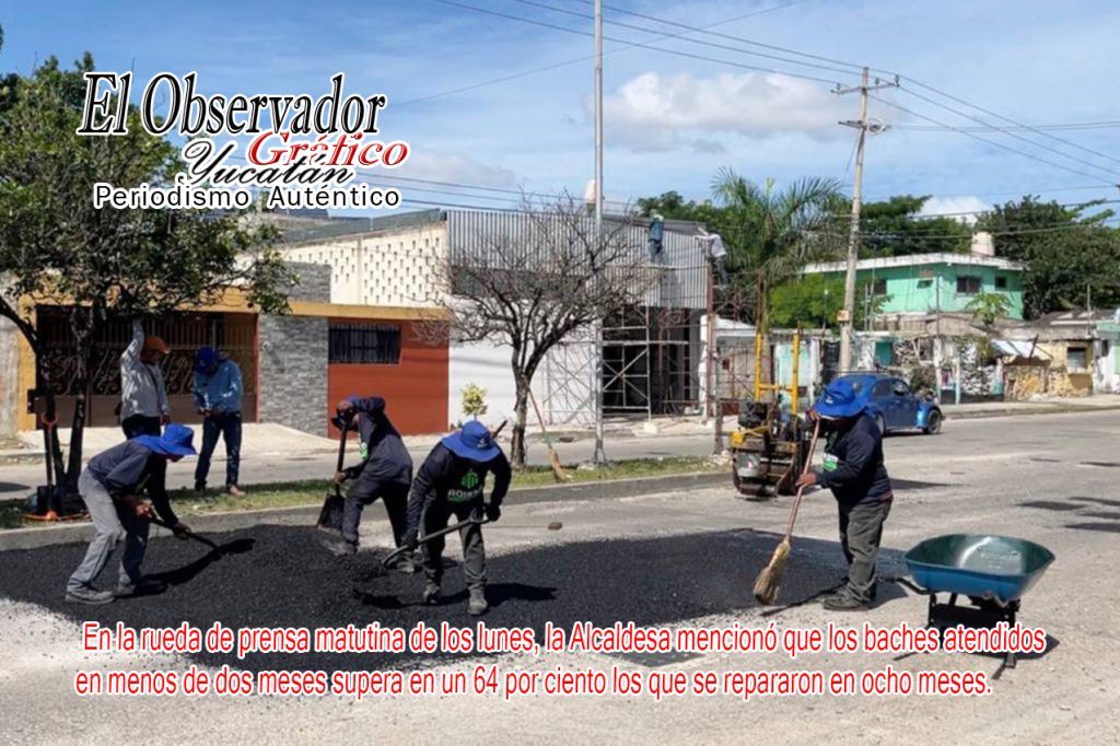 En la rueda de prensa matutina de los lunes, la Alcaldesa mencionó que los baches atendidos en menos de dos meses supera en un 64 por ciento los que se repararon en ocho meses.