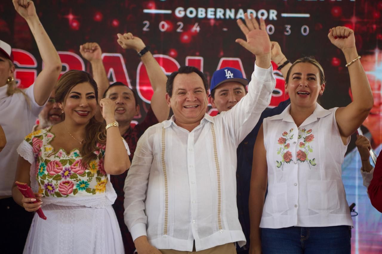 El ambiente que se vivió fue totalmente festivo, ya que cuando acudió durante la campaña tuvo un recibimiento más que cálido, por lo que decidió estar presente hoy y celebrar ahí mismo su cumpleaños acompañado de su esposa Wendy, de sus hijos Joaquín y Julián, así como de sus padres quienes bailaron y disfrutaron de la fiesta.