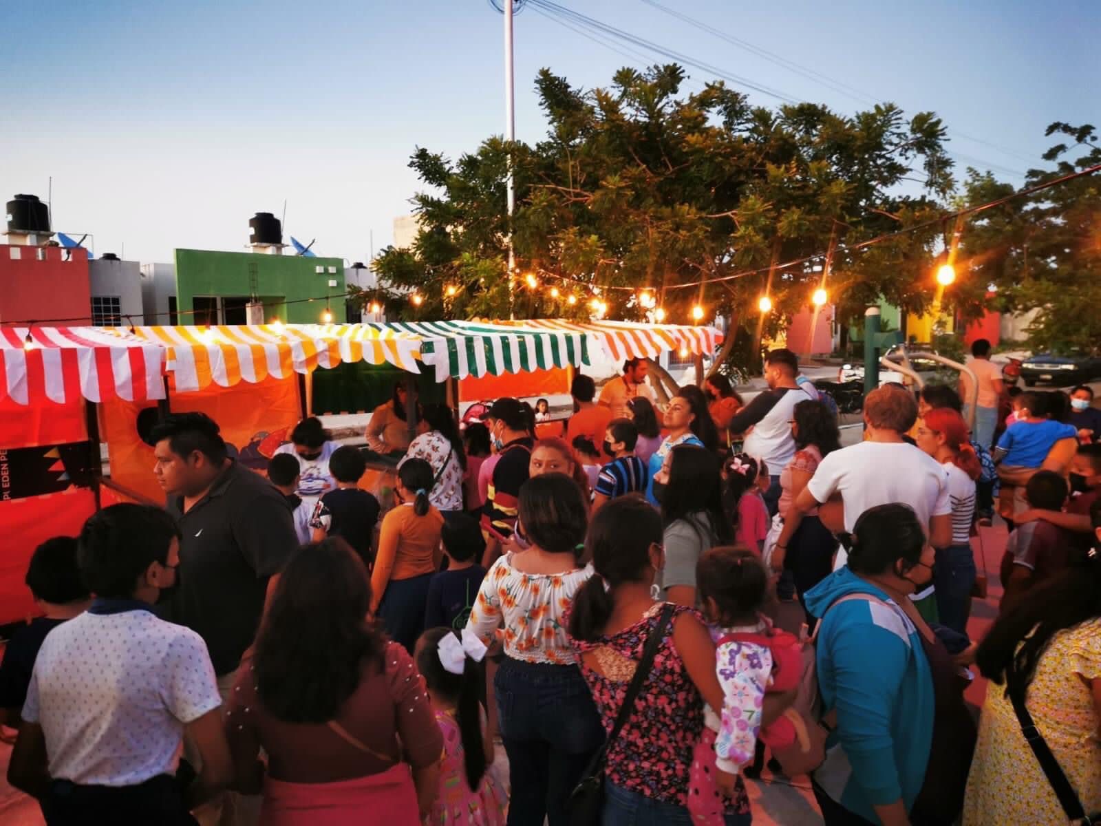 “Tardes de Feria y Cine en tu Colonia”, se lleva al cabo en los parques que están siendo rehabilitados y será extensivo a diversos puntos de Kanasín, por lo que se mantendrá el programa hasta alcanzar a más niños y más familias, creando así espacios de esparcimiento para reforzar el tejido familiar y social en el municipio.