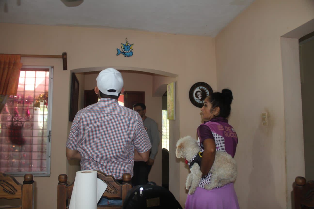 Hoy en compañía del personal de Protección Civil, visitó a familias umanenses afectadas, en donde se sumó con ellos a las denuncias ciudadanas por los daños colaterales que la obra del Tren Maya ha causado al patrimonio de los ciudadanos de Umán.