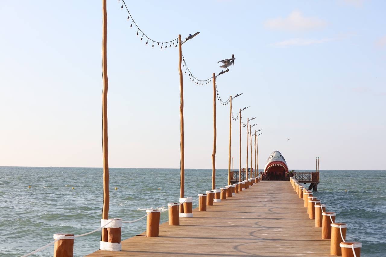 Al hablar del muelle, Vila Dosal indicó que es una obra hecha en equipo, ya que el Gobierno del Estado construyó la estructura y el Ayuntamiento de Progreso realizó el relleno, la iluminación y la decoración con un megalodón y un columpio y las tradicionales letras con el nombre de la localidad.