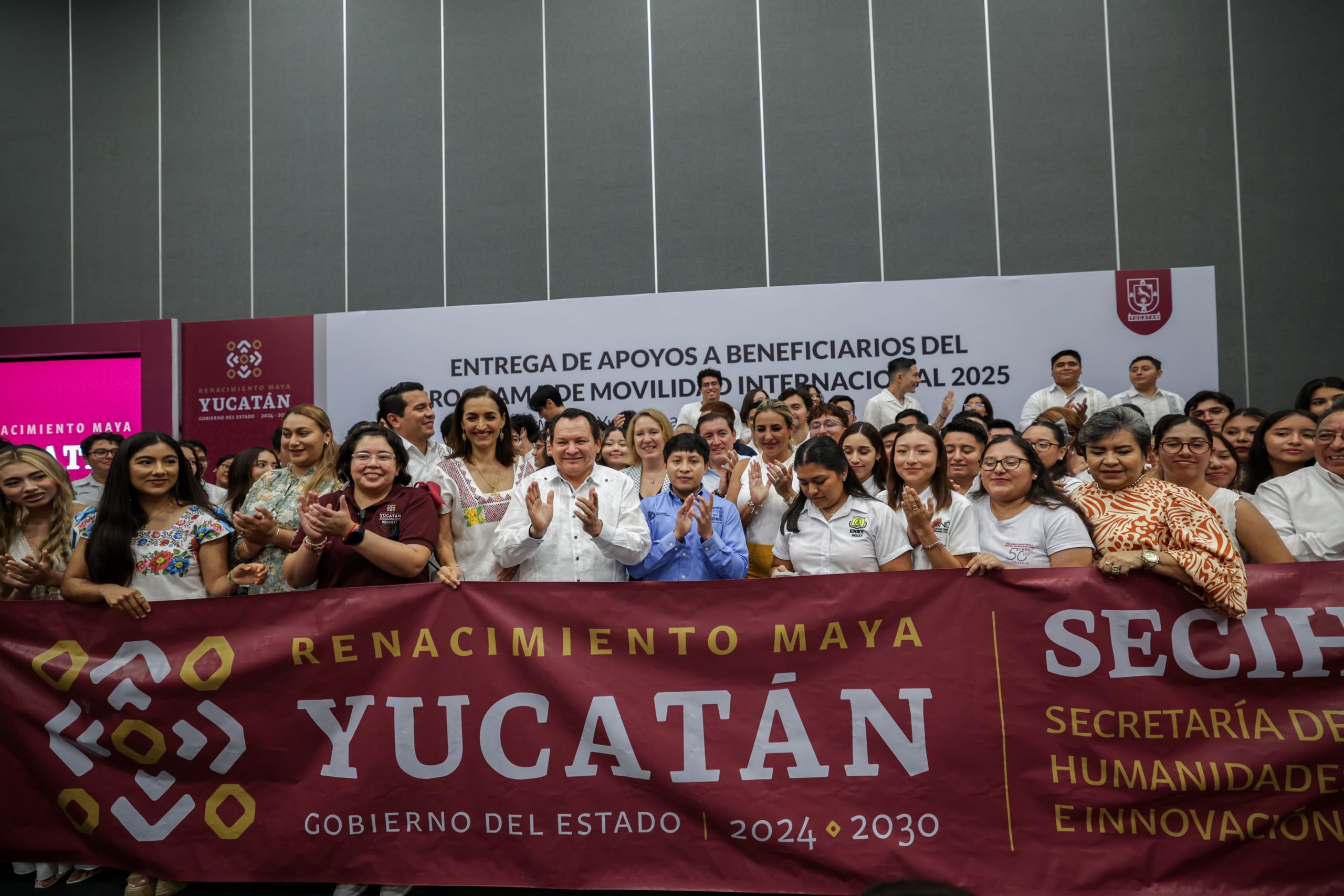 Desde el Centro Internacional de Congresos de Mérida, Díaz Mena entregó los apoyos acompañado por Geovanna Campos Vázquez, secretaria de Ciencia, Humanidades, Tecnología e Innovación (Secihti), e informó que las y los beneficiarios contarán con hospedaje, alimentación, cursos intensivos de inglés, actividades culturales, seguro médico, pasaporte, visa, boletos de avión y transporte terrestre, con el objetivo de que aprovechen al máximo esta experiencia formativa.