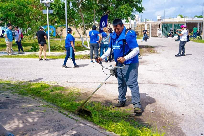 Vecinos del Acuaparque y voluntarios acompañaron a la alcaldesa electa de Mérida, Cecilia Patrón Laviada, a la limpieza y poda de áreas verdes, así como la fumigación y abatización de predios para evitar la proliferación de moscos en la zona.