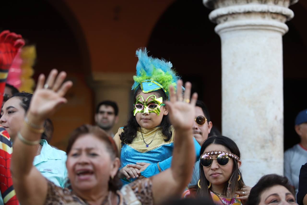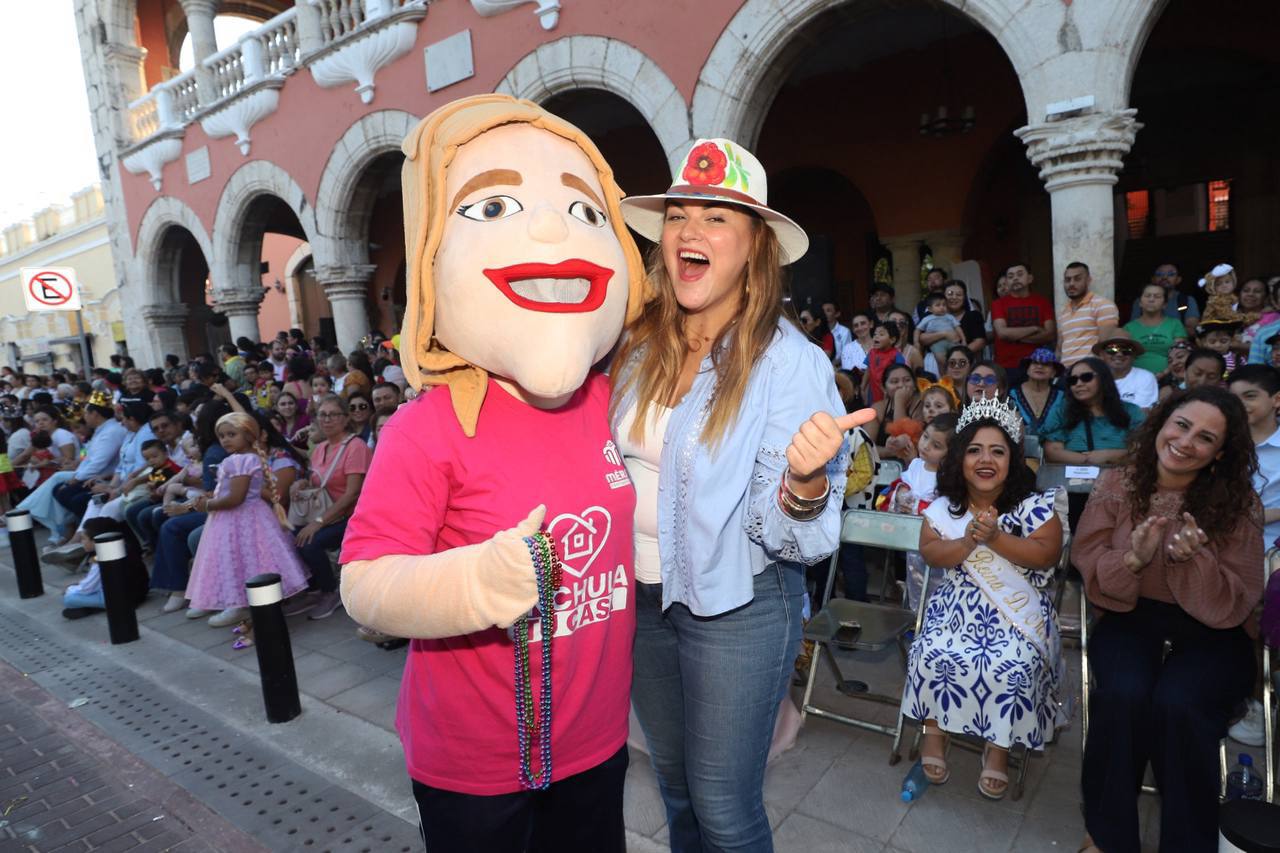 La niñez meridana llena de alegría Plaza Grande con tradicional Carnaval Infantil / Nuestras niñas y niños tienen derecho a crecer en una ciudad segura, que los cuide y les permita vivir plenos y felices, declara Cecilia Patrón.