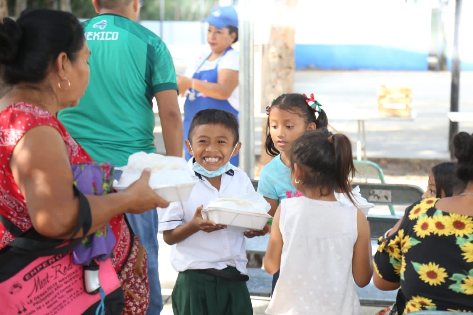 La entrega no tiene distinción. Los alimentos se dan a niños, jóvenes y adultos de las familias pertenecientes a la zona visitada. La Finca, San Ángel, Cuauhtemoc, Mulchechén, Kaua y Centros Comunitarios, son algunas de las colonias y puntos en los que ha llegado este proyecto y aún faltan para cerrar este año. En el Comedor Comunitario Móvil laboran alrededor de 50 personas.