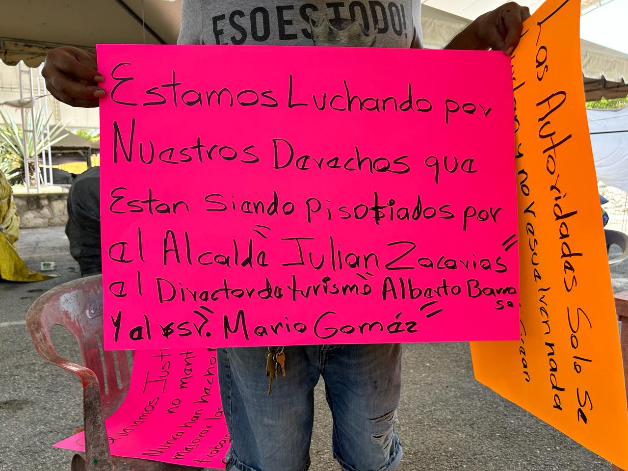 Los comerciantes de artesanías manifestaron que sin previo aviso y pese a que desde hace años han estado solicitando ser reubicados en un lugar seguro ubicado frente al “playón” el ayuntamiento sin previo aviso vendió ese espacio a una cadena comercial, quienes para evitar ser reubicados en la vía pública, como pretende la autoridad municipal, buscaron la protección de un amparo y hasta interpusieron una demanda penal ya ratificada, sin embargo y haciendo caso omiso, ayer un grupo de obreros comenzaron a destruir la nave y hasta colocaron una maya, dejándolos encerrados en ese lugar.