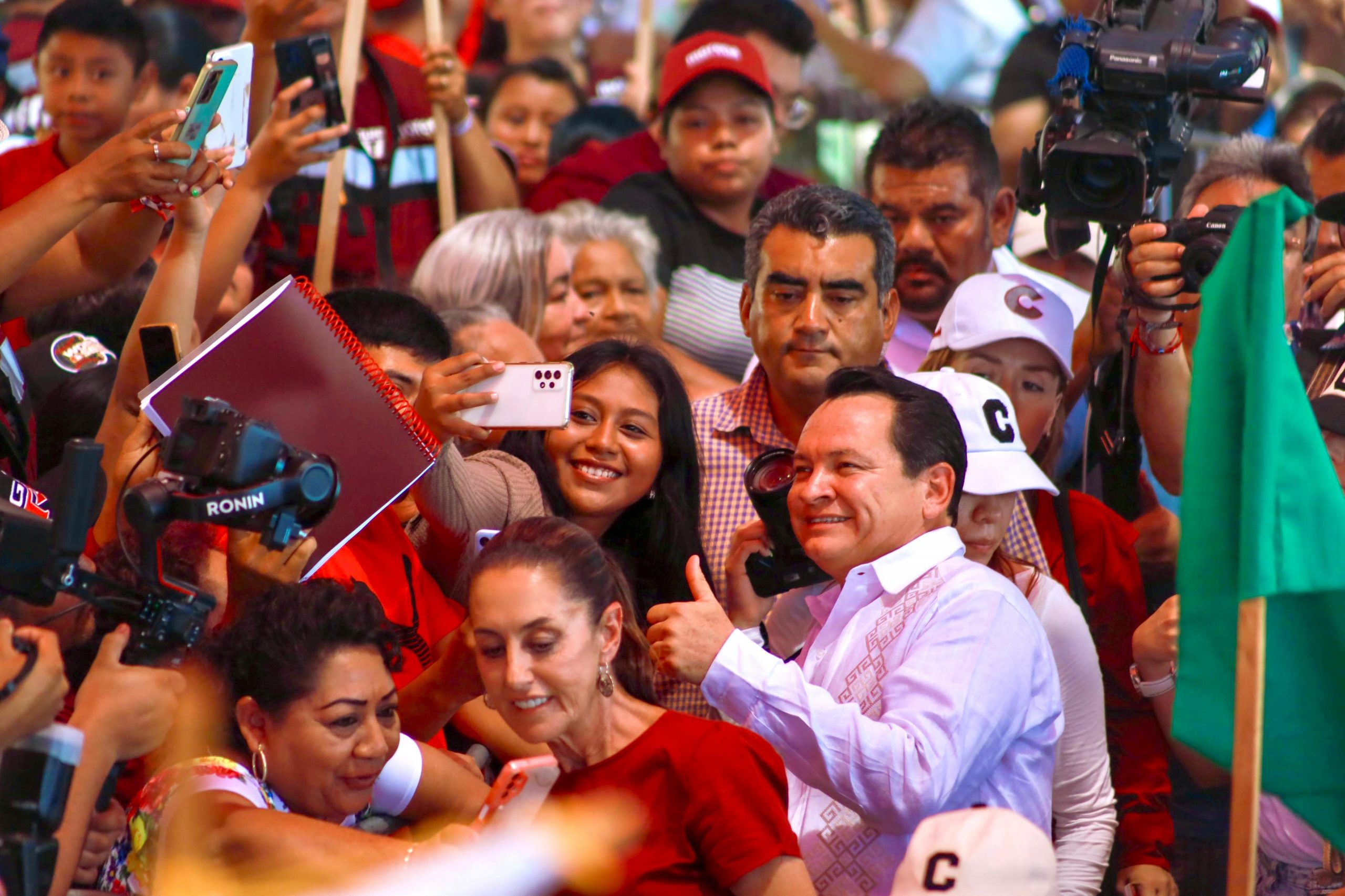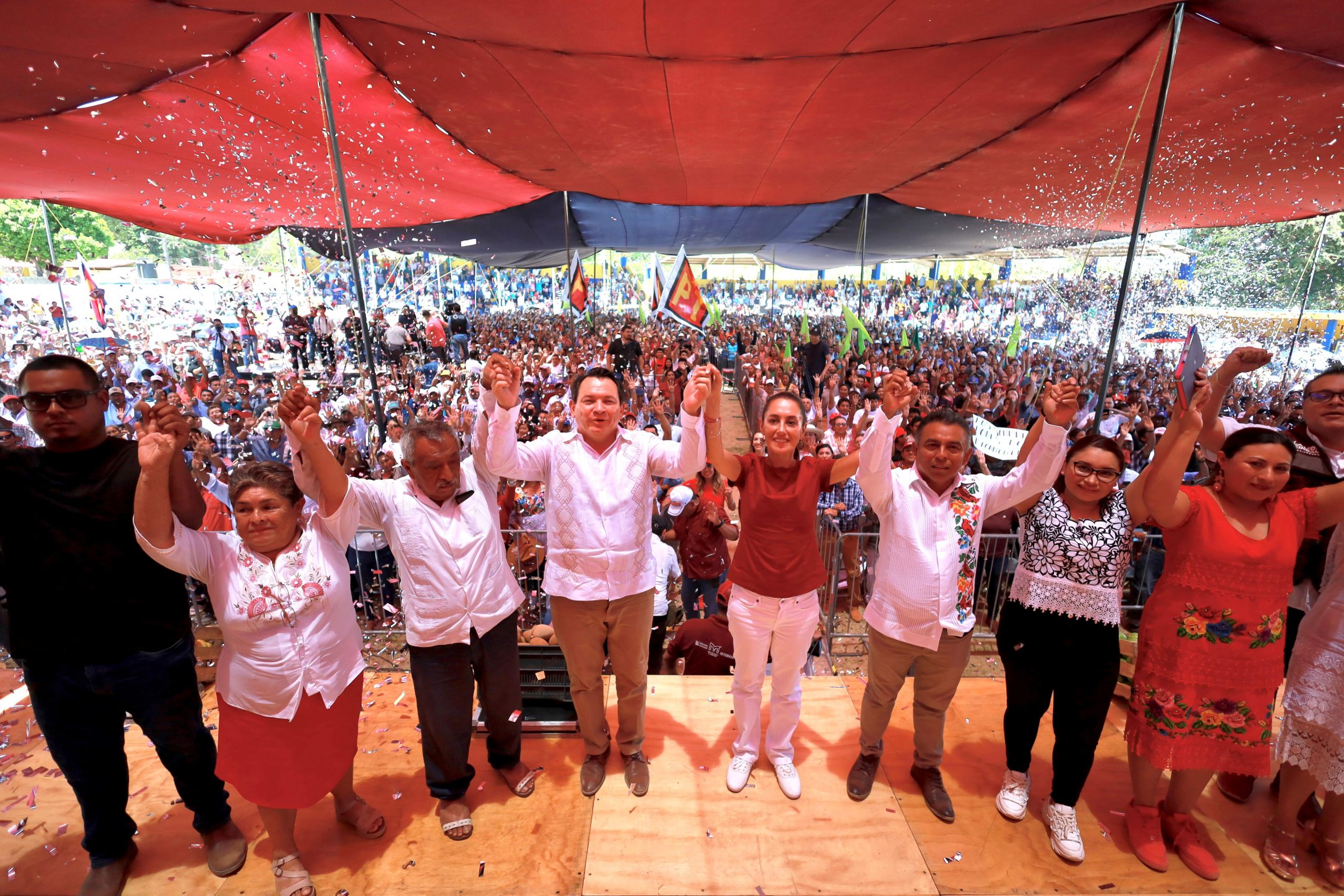 El pueblo de Tekax llegó al encuentro para mostrar su respaldo a Huacho, a Claudia Sheinbaum y a Manuel Vallejos, candidato a la presidencia municipal.