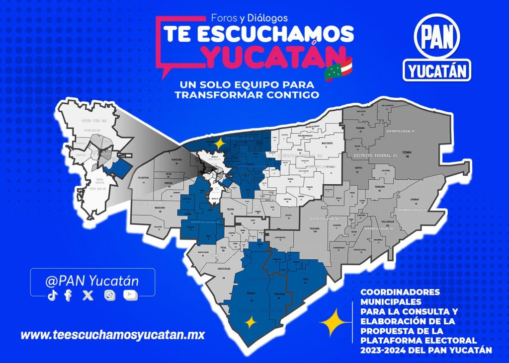 En la primera semana de octubre, mediante los foros “Te Escuchamos Yucatán” realizados en diferentes municipios, el Partido Acción Nacional (PAN) ha escuchado las propuestas y sumado las voces de las y los yucatecos para construir la plataforma política de 2024.
