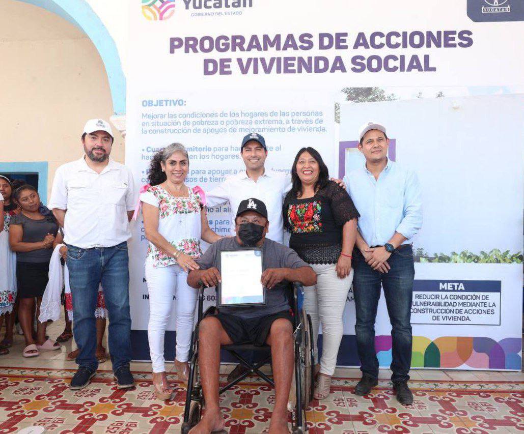 Acompañado del director del Instituto de Vivienda del estado (IVEY), Carlos Viñas Heredia, el Gobernador entregó 20 certificados de acciones de Vivienda Social para la construcción de pisos, baños, cocinas ecológicas y cuartos adicionales, con lo que se mejora la calidad de vida de las familias al contar con espacios más dignos.