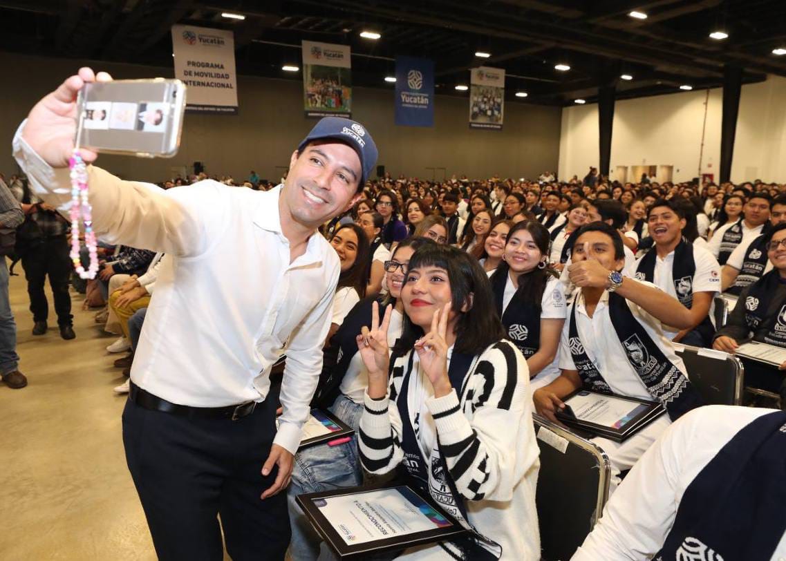 Vila Dosal reconoció a los 500 estudiantes de universidades públicas y privadas de 54 municipios del estado, los 5 de posgrado y 50 docentes de inglés que viajarán a Estados Unidos y Canadá para seguir preparándose.